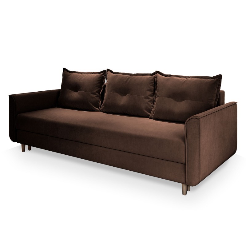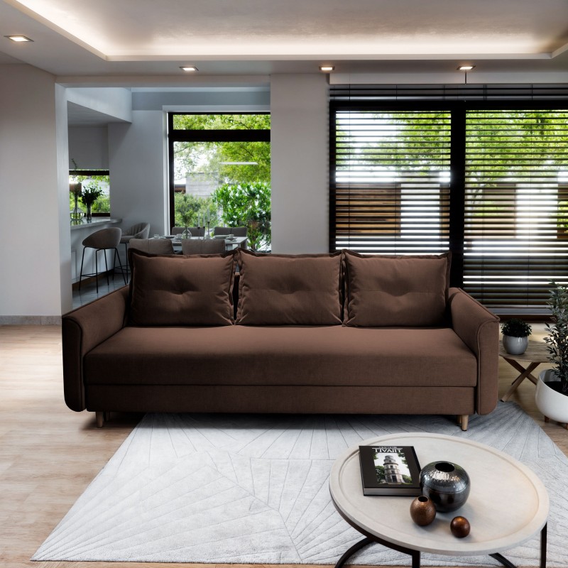 Masseno Sofa NAPOL z funkcją spania i pojemnikiem na pościel, Rozkładana sofa - Brązowy, KRONOS 06