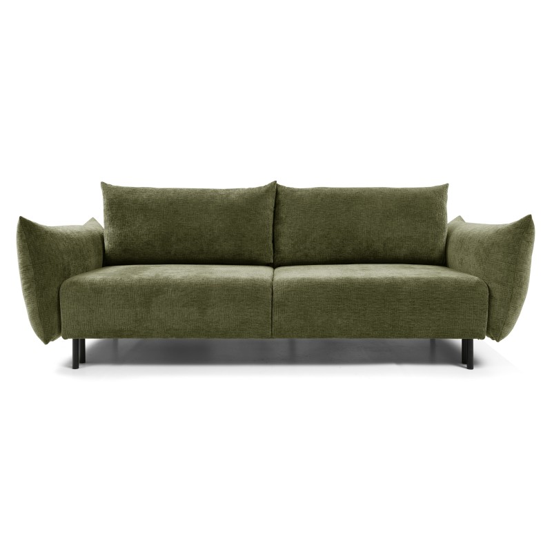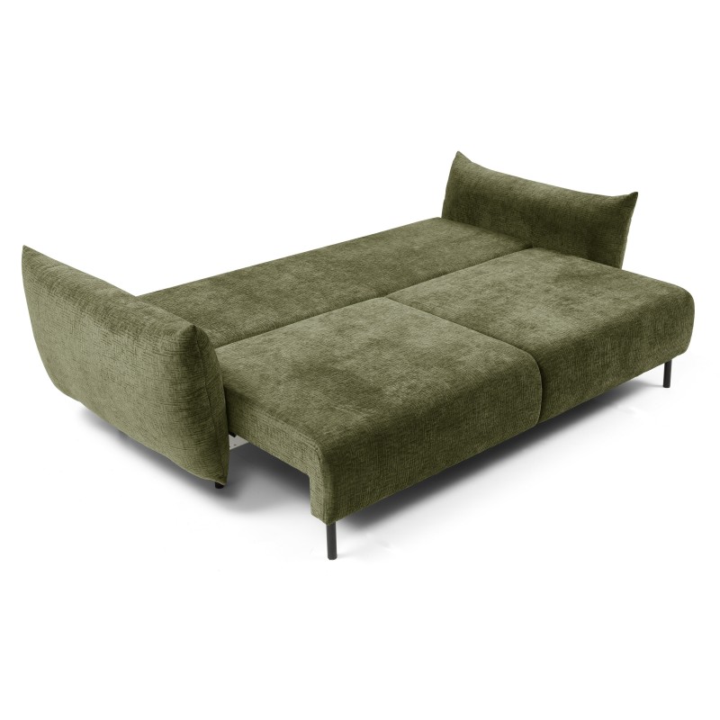Masseno Sofa UNO z funkcją spania i pojemnikiem na pościel, Rozkładana sofa - Zielony, OVER THE HORIZON 38