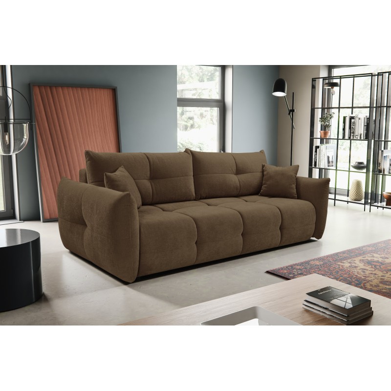 Masseno Sofa MODA z funkcją spania i pojemnikiem na pościel, Rozkładana sofa - Brązowy, WIND 22