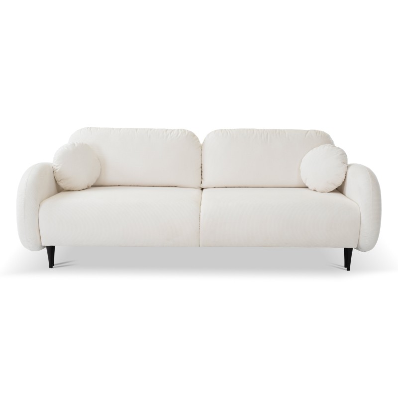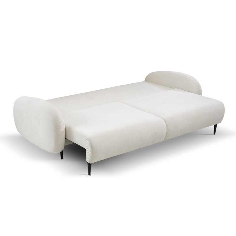 Masseno Sofa AGIO z funkcją spania i pojemnikiem na pościel, Rozkładana sofa - Kremowy, RUN AGAIN 01