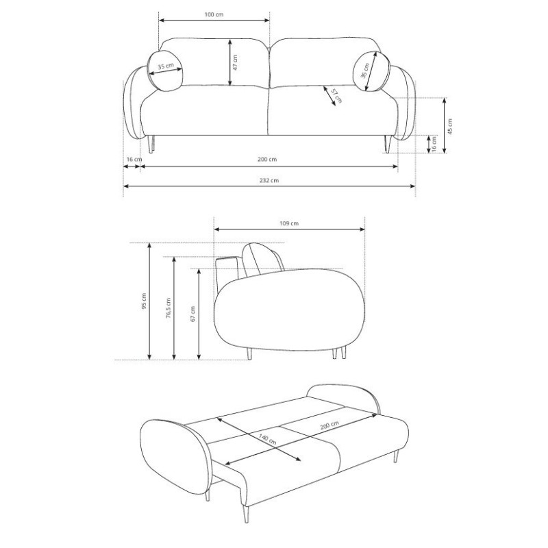 - Funkcja spania – rozkładana sofa jest idealna jako mebel wypoczynkowy w dzień i jako łóżko dla gości w nocy.