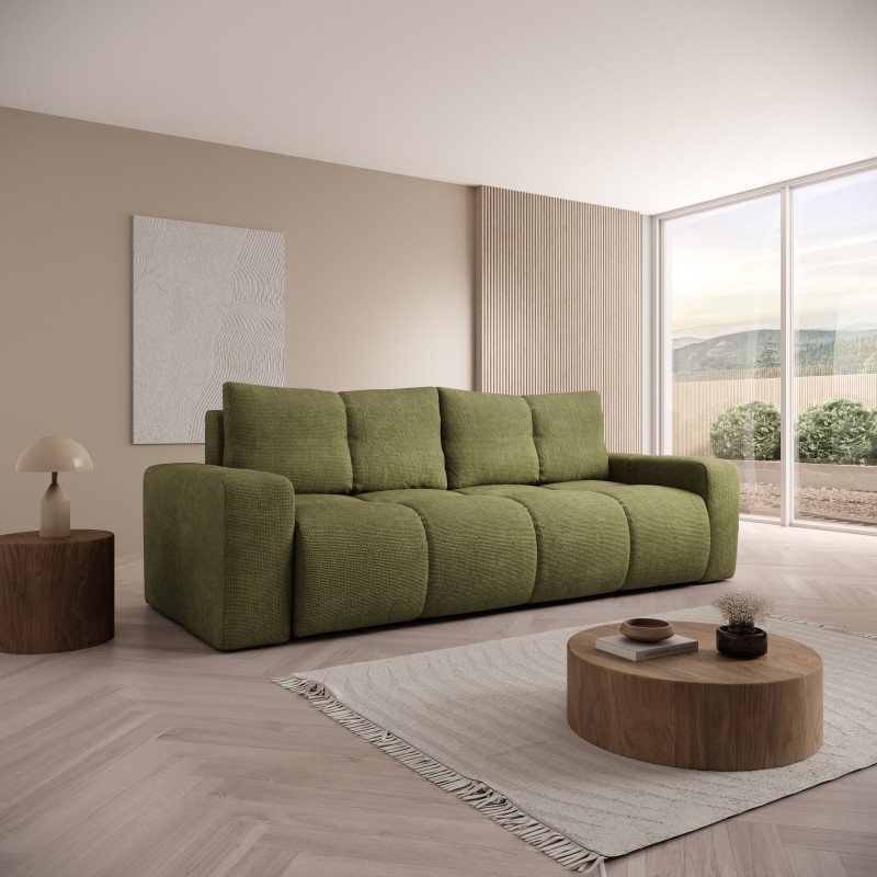 Masseno Sofa DUCA z funkcją spania i pojemnikiem na pościel, Rozkładana sofa - Oliwkowy, FLOW 12