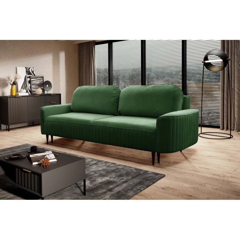 Masseno Sofa FILO z funkcją spania i pojemnikiem na pościel, Rozkładana sofa - Zielony, VELLUTO 10