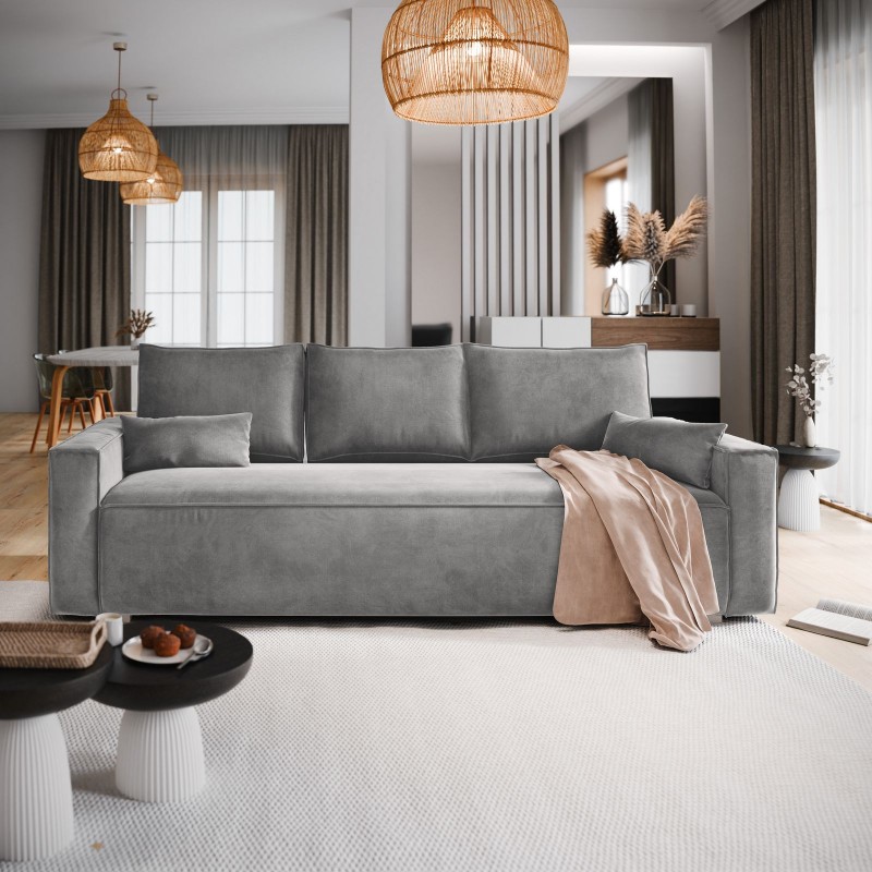 Masseno Sofa ALATRI z funkcją spania i pojemnikiem na pościel, Rozkładana sofa - Jasnoszary, MONOLITH 84