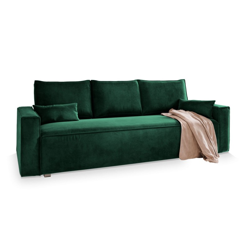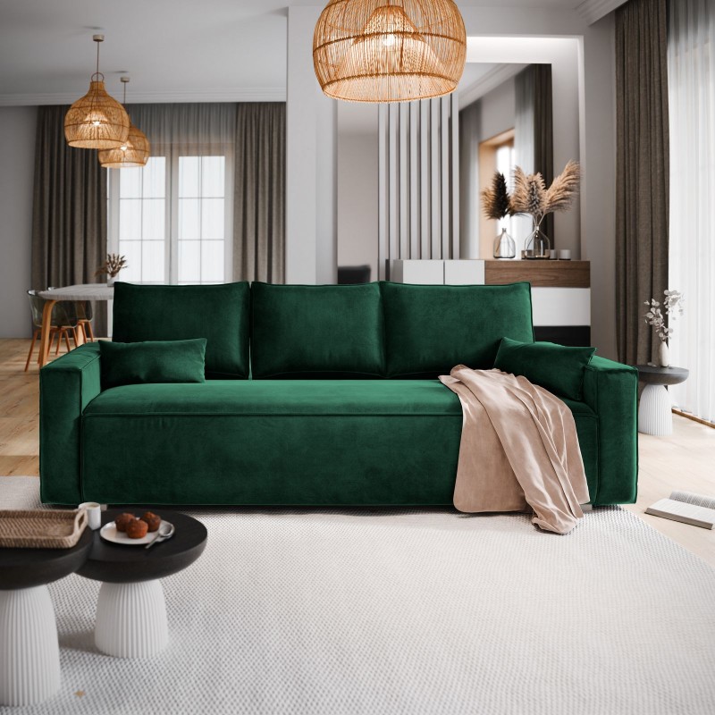 Masseno Sofa ALATRI z funkcją spania i pojemnikiem na pościel, Rozkładana sofa - Butelkowa zieleń, MONOLITH 37