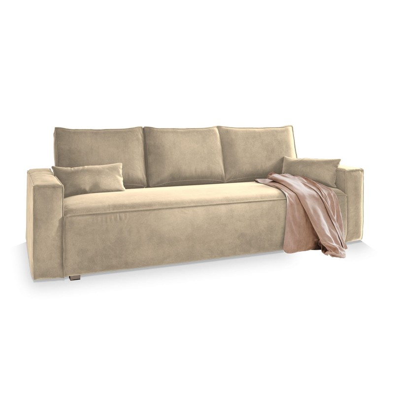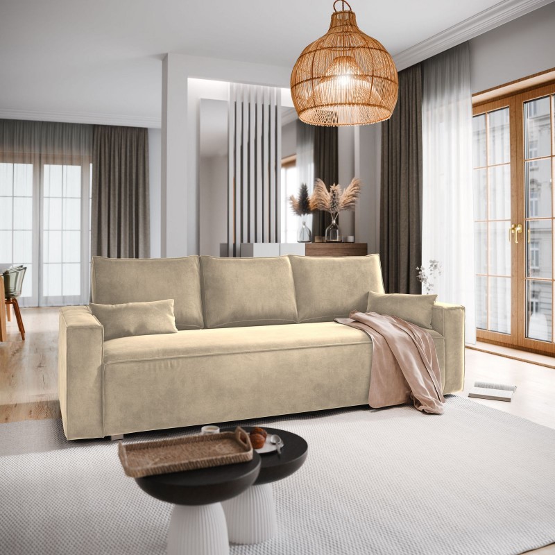 Masseno Sofa ALATRI z funkcją spania i pojemnikiem na pościel, Rozkładana sofa - Kremowy, Monolith 04