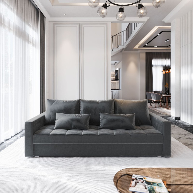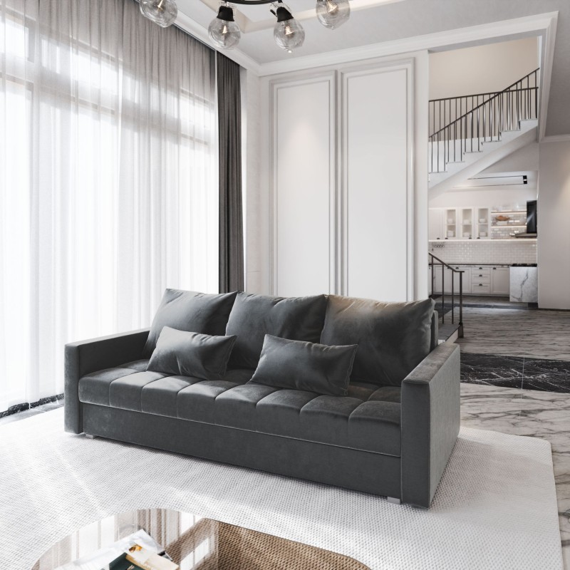 Masseno Sofa SIRO z funkcją spania i pojemnikiem na pościel, Rozkładana sofa - Szary, PAROS 06