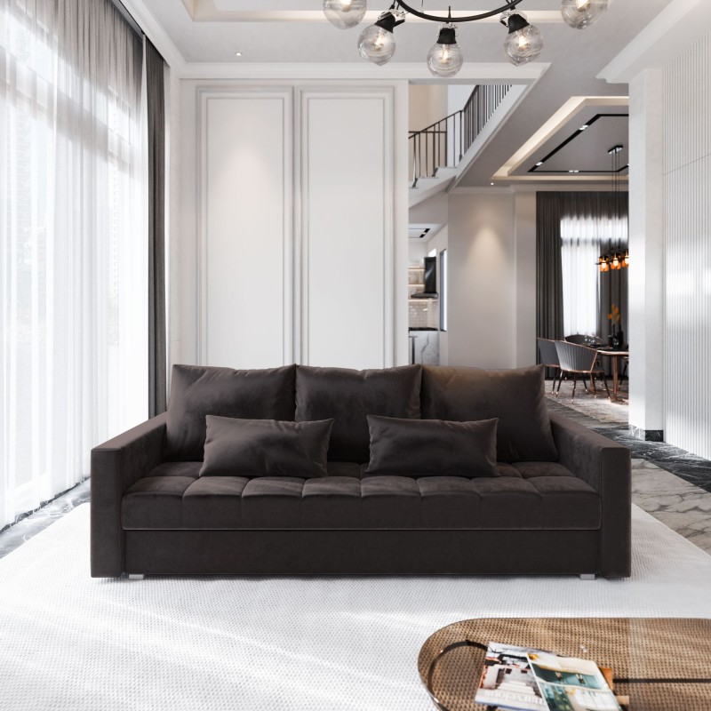 Masseno Sofa SIRO z funkcją spania i pojemnikiem na pościel, Rozkładana sofa - Brązowy, KRONOS 06