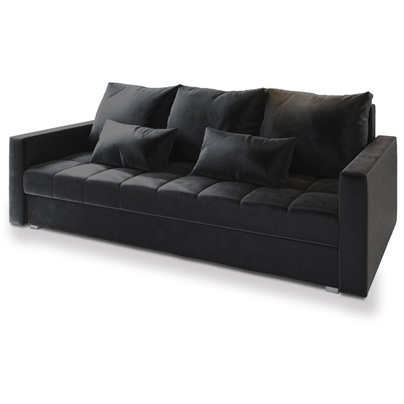 Masseno Sofa SIRO z funkcją spania i pojemnikiem na pościel, Rozkładana sofa - Czarny, KRONOS 07