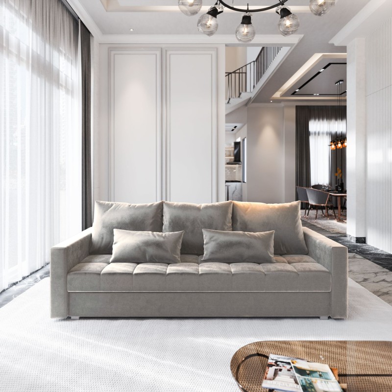 Masseno Sofa SIRO z funkcją spania i pojemnikiem na pościel, Rozkładana sofa - Beżowy, PAROS 02