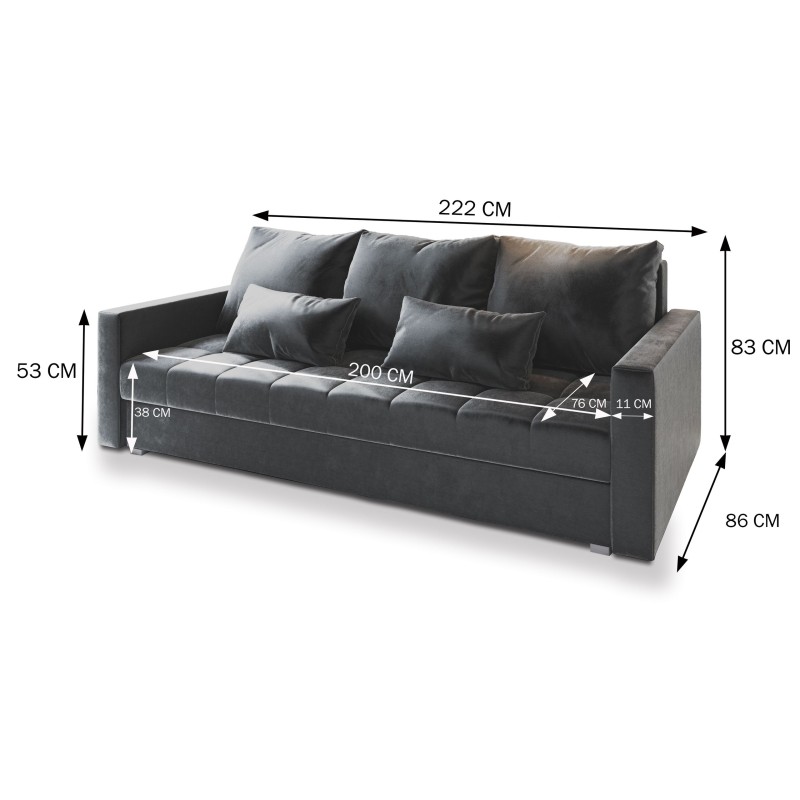 Nasza kanapa, to nie tylko wygodne miejsce do siedzenia, ale także dzięki funkcji rozkładania jest doskonałym rozwiązaniem do spania. Wystarczy jeden ruch by przekształcić sofę w wygodne łóżko. Ponadto pod siedziskiem znajduje się przestronny pojemnik, idealny do przechowywania pościeli.
