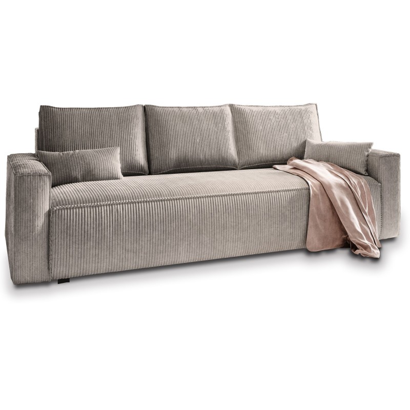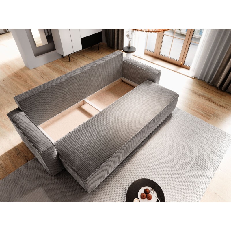 Rozkładana Kanapa MENI, jest wykonana w modnym i eleganckim sztruksowym materiale, zgodnie z najnowszymi światowymi trendami. Ponadczasowy design, przyjemna i miękka w dotyku tkanina POSO, która występuje w wielu przebojowych kolorach, doda pomieszczeniom przytulnego klimatu.