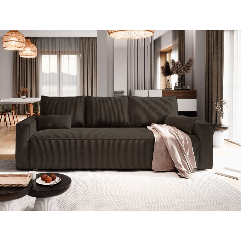Masseno Sofa MENI z funkcją spania i pojemnikiem na pościel, Rozkładana sofa - Brązowy, POSO 06
