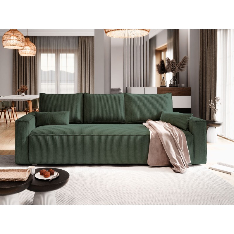 Masseno Sofa MENI z funkcją spania i pojemnikiem na pościel, Rozkładana sofa - Butelkowa zieleń, POSO 14