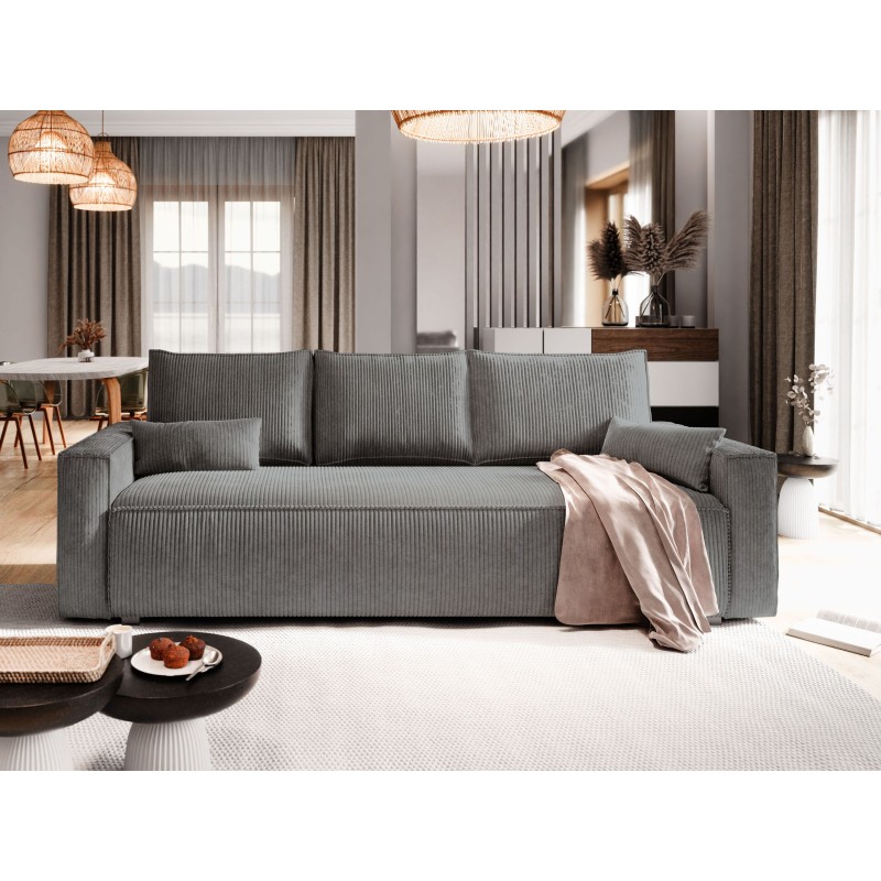 Masseno Sofa MENI z funkcją spania i pojemnikiem na pościel, Rozkładana sofa - Szary, POSO 60