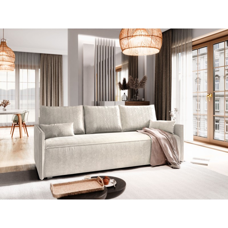 Masseno Sofa MESTOR z funkcją spania i pojemnikiem na pościel, Rozkładana sofa - Kremowy, POSO 100