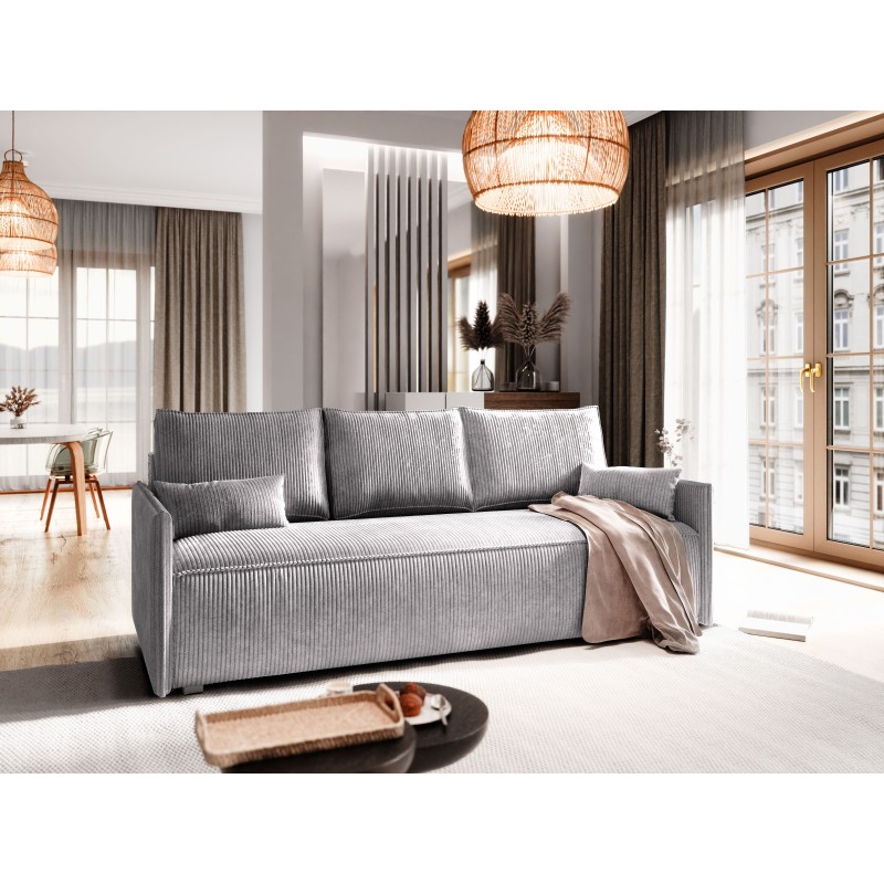 Masseno Sofa MESTOR z funkcją spania i pojemnikiem na pościel, Rozkładana sofa - Jasnoszary, POSO 55