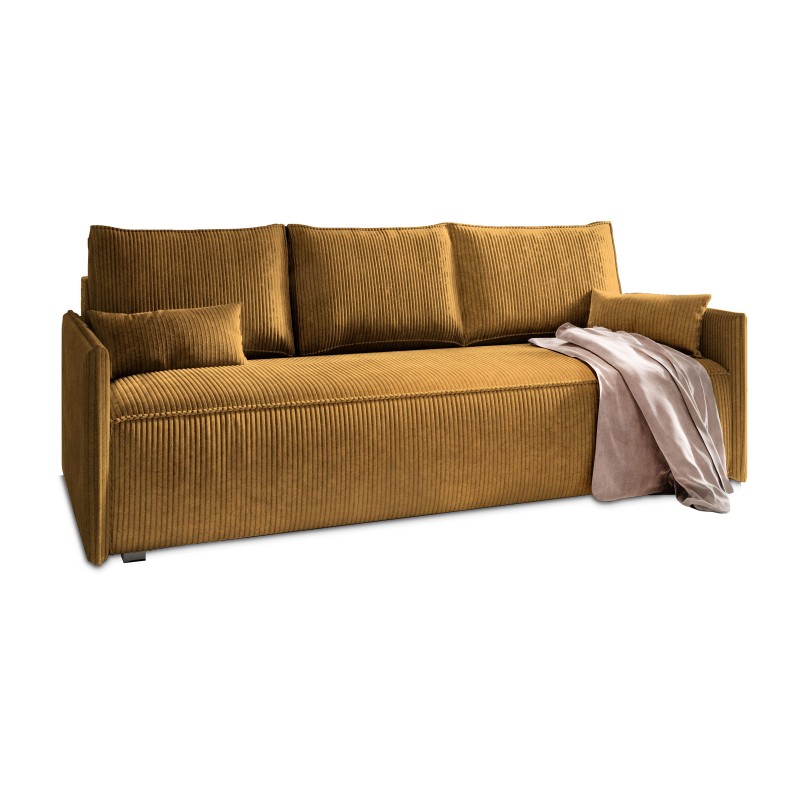 Masseno Sofa MESTOR z funkcją spania i pojemnikiem na pościel, Rozkładana sofa - Żółty, POSO 01