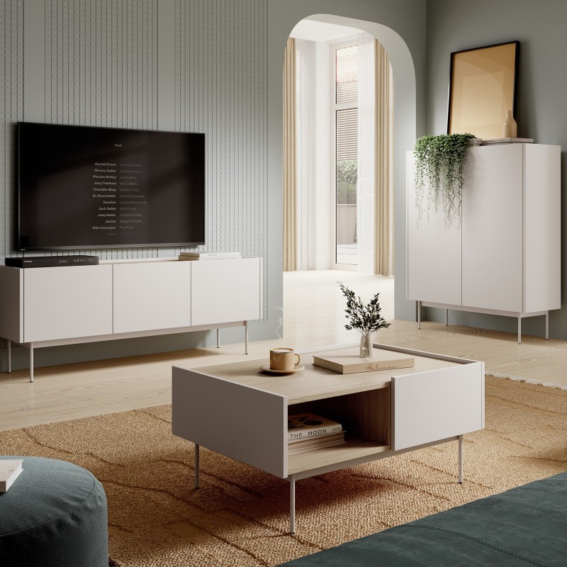 Ława jest tak uniwersalna, że pasuje do każdej aranżacji – nie musisz się martwić, czy styl się zmieni. Jest stworzona, by harmonizować z Twoją sofą i innymi meblami, stając się eleganckim dopełnieniem całości, które zawsze wygląda modnie.