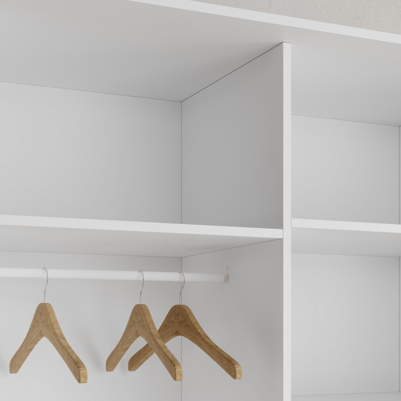 - Wewnątrz znajduje się wytrzymały aluminiowy drążek na wieszaki z eleganckim, chromowanym wykończeniem. To idealne rozwiązanie dla osób, które cenią porządek i wygodę w przechowywaniu ubrań.