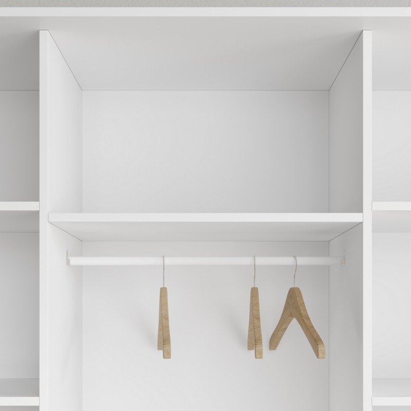 - Wewnątrz znajduje się wytrzymały aluminiowy drążek na wieszaki z eleganckim, chromowanym wykończeniem. To idealne rozwiązanie dla osób, które cenią porządek i wygodę w przechowywaniu ubrań.
