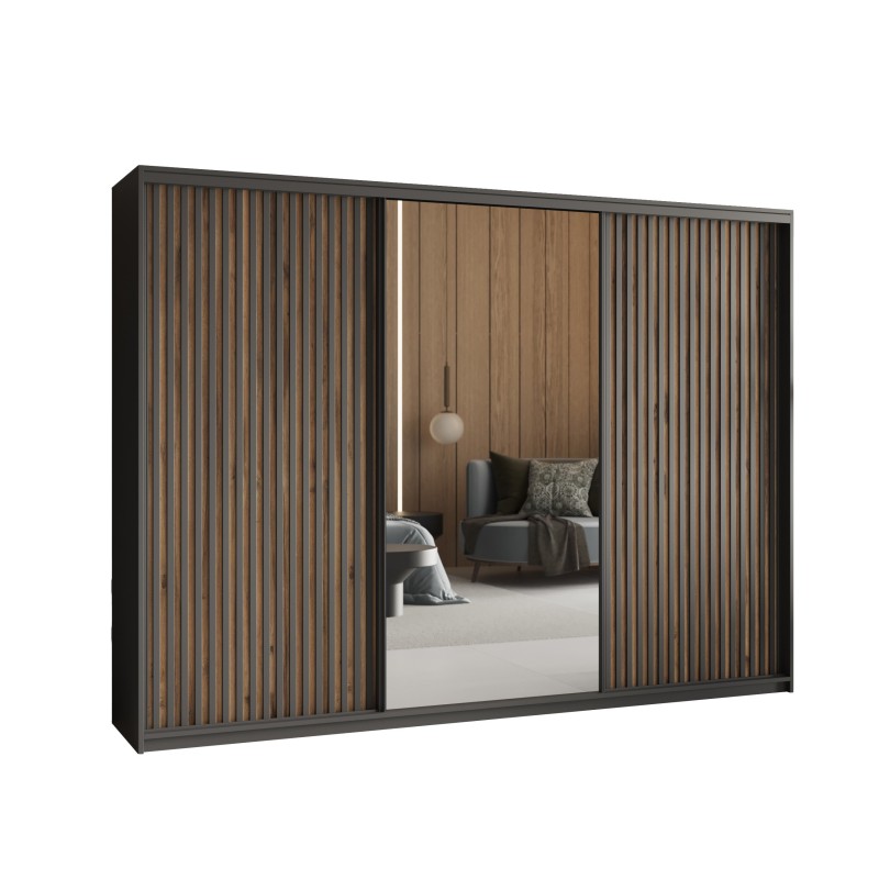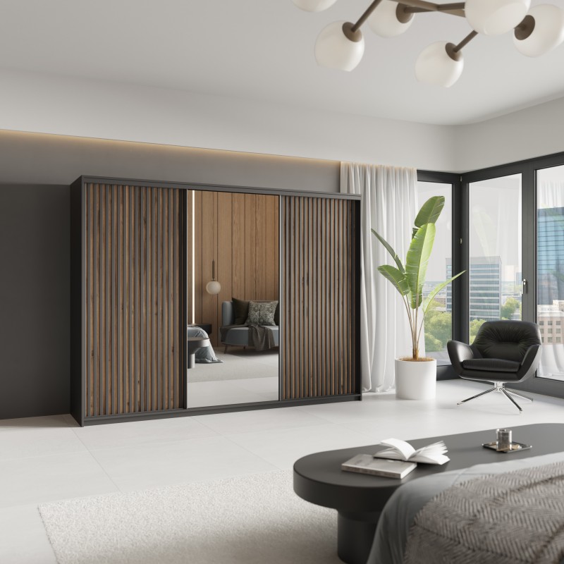 Szafa przesuwna ORRA 270 cm z lustrem i lamelami – nowoczesny design i maksymalna funkcjonalność