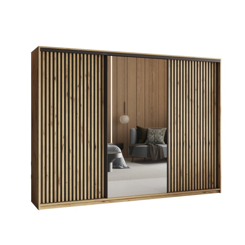 Szafa przesuwna ORRA 270 cm z lustrem i lamelami – nowoczesny design i maksymalna funkcjonalność