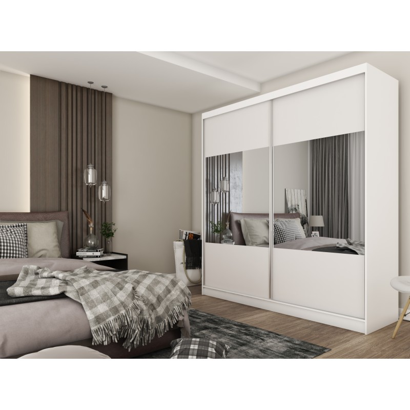 Szafa Przesuwna AZZURRA 200 cm z Lustrem Szafa Dwudrzwiowa Biała