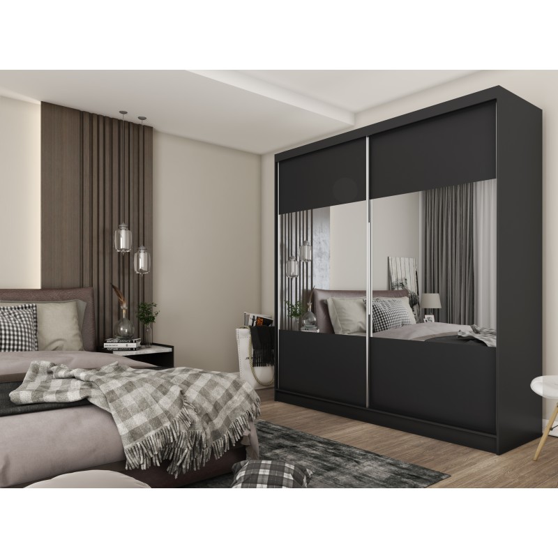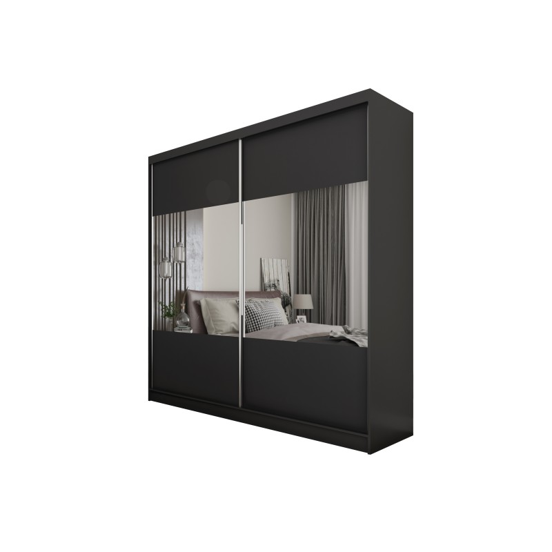 Szafa Przesuwna AZZURRA 200 cm z Lustrem Szafa Dwudrzwiowa Czarna