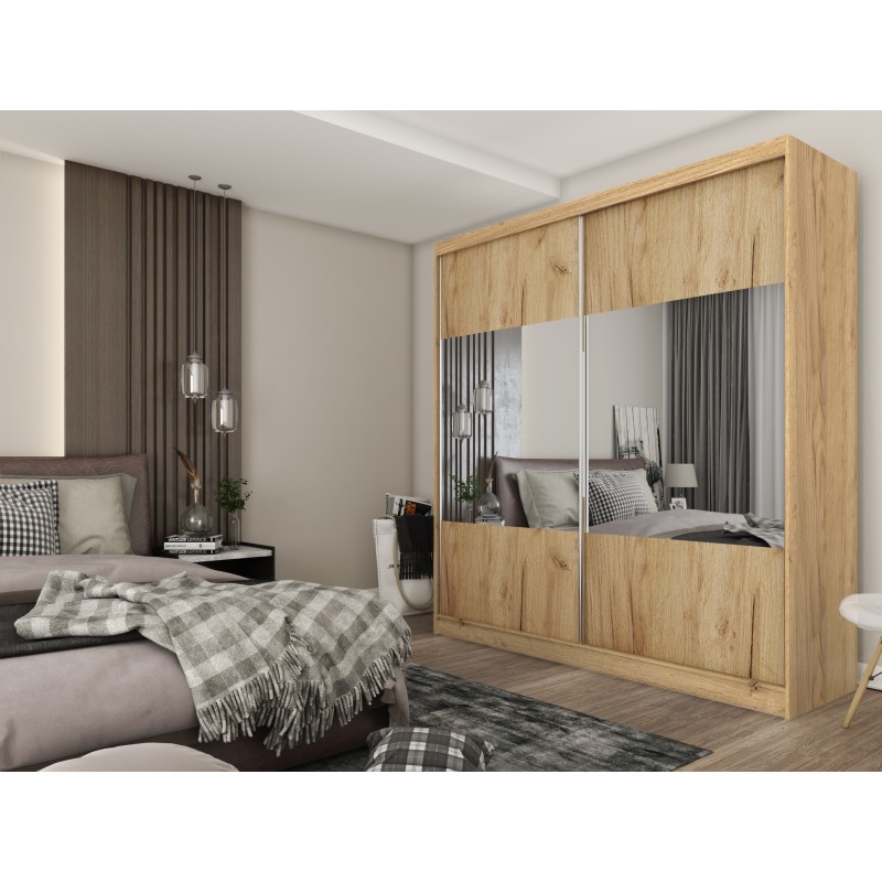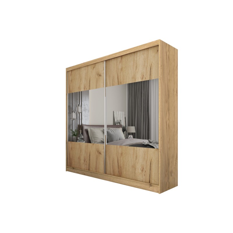Szafa Przesuwna AZZURRA 200 cm z Lustrem Szafa Dwudrzwiowa Dąb artisan