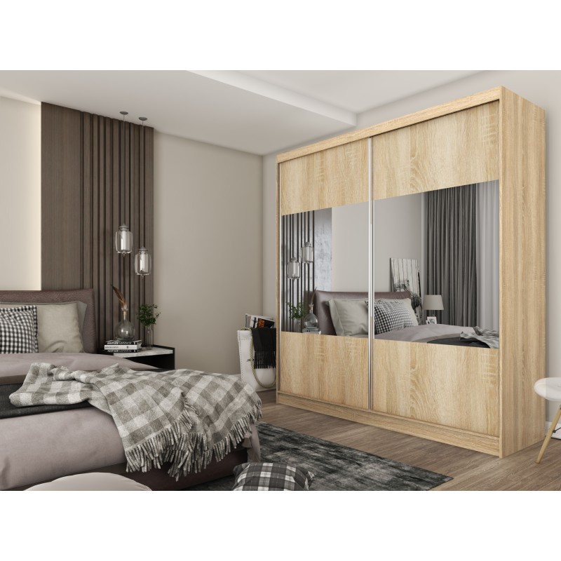 Szafa Przesuwna AZZURRA 200 cm z Lustrem Szafa Dwudrzwiowa Dąb sonoma