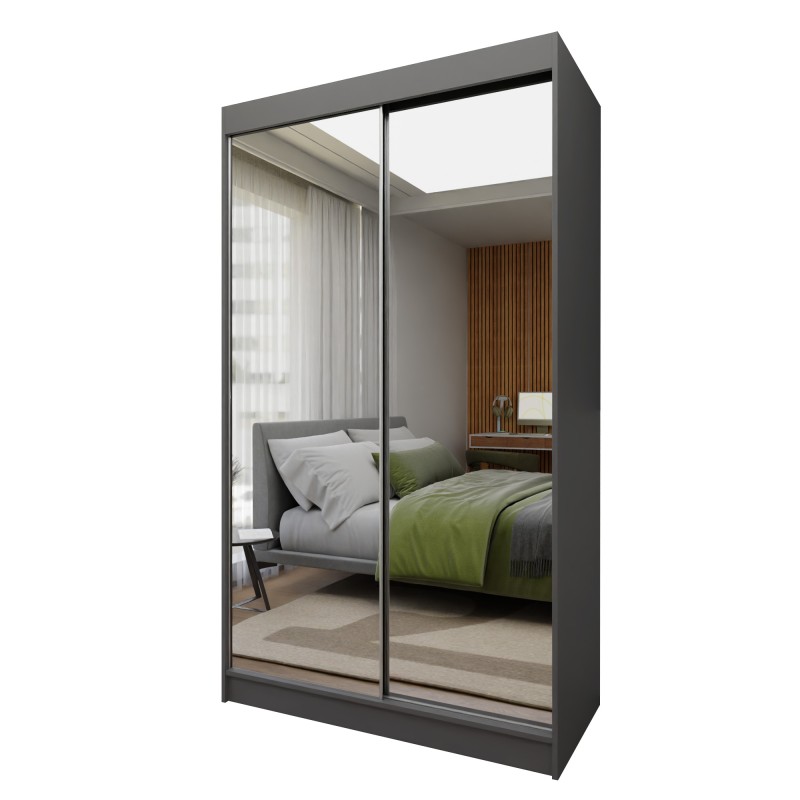 Szafa Przesuwna BELLINA 120 cm z Lustrem Szafa Dwudrzwiowa Szara