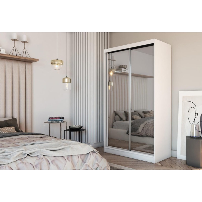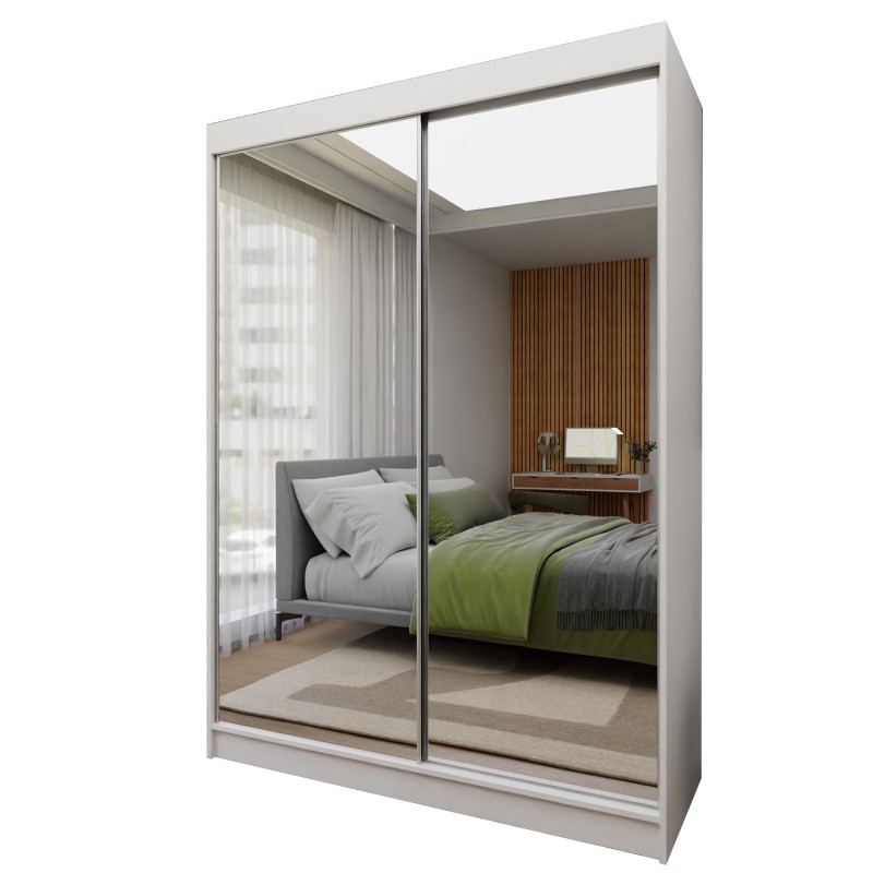 Szafa Przesuwna BELLINA 150 cm z Lustrem Szafa Dwudrzwiowa Biała