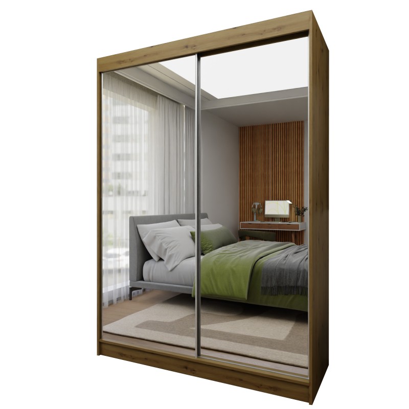 Szafa Przesuwna BELLINA 150 cm z Lustrem Szafa Dwudrzwiowa Dąb artisan