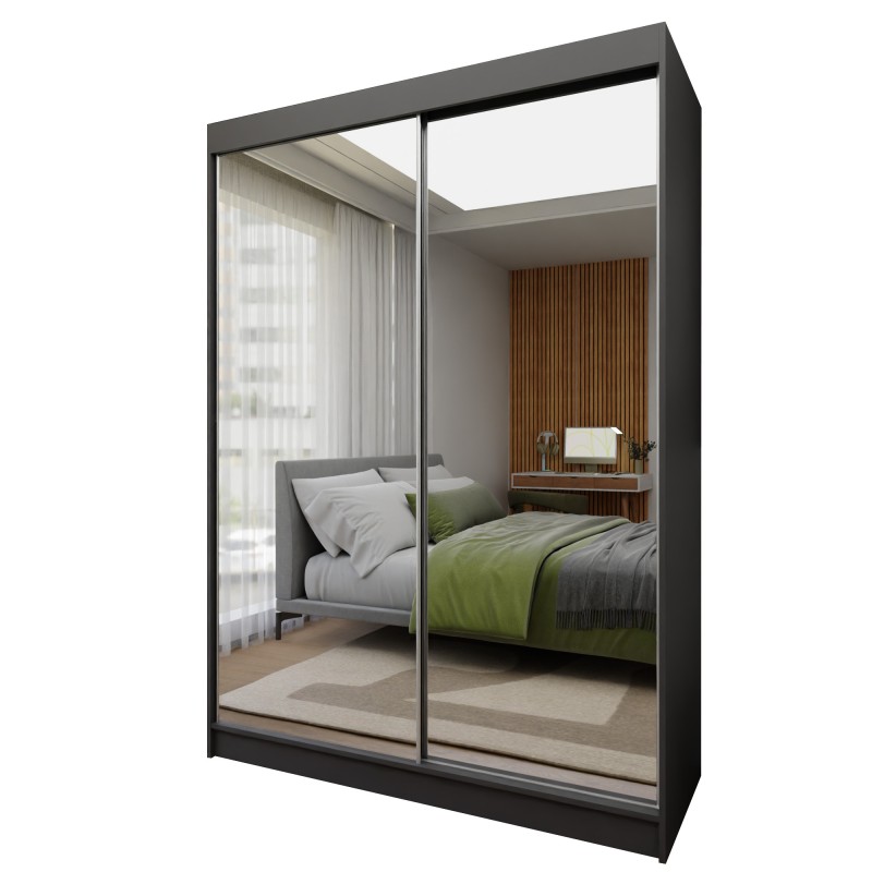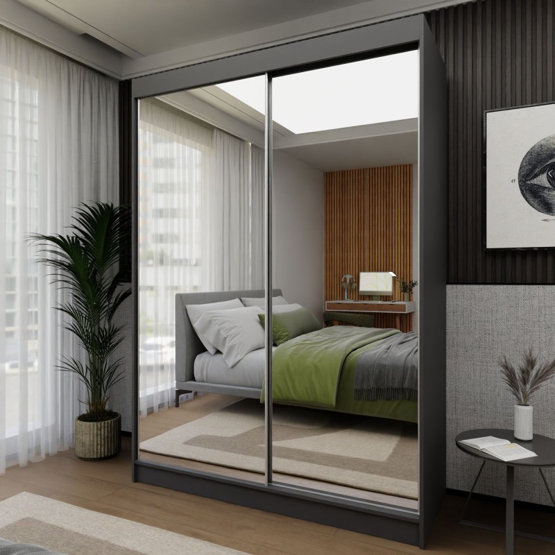 Szafa Przesuwna BELLINA 160 cm z Lustrem Szafa Dwudrzwiowa Szara