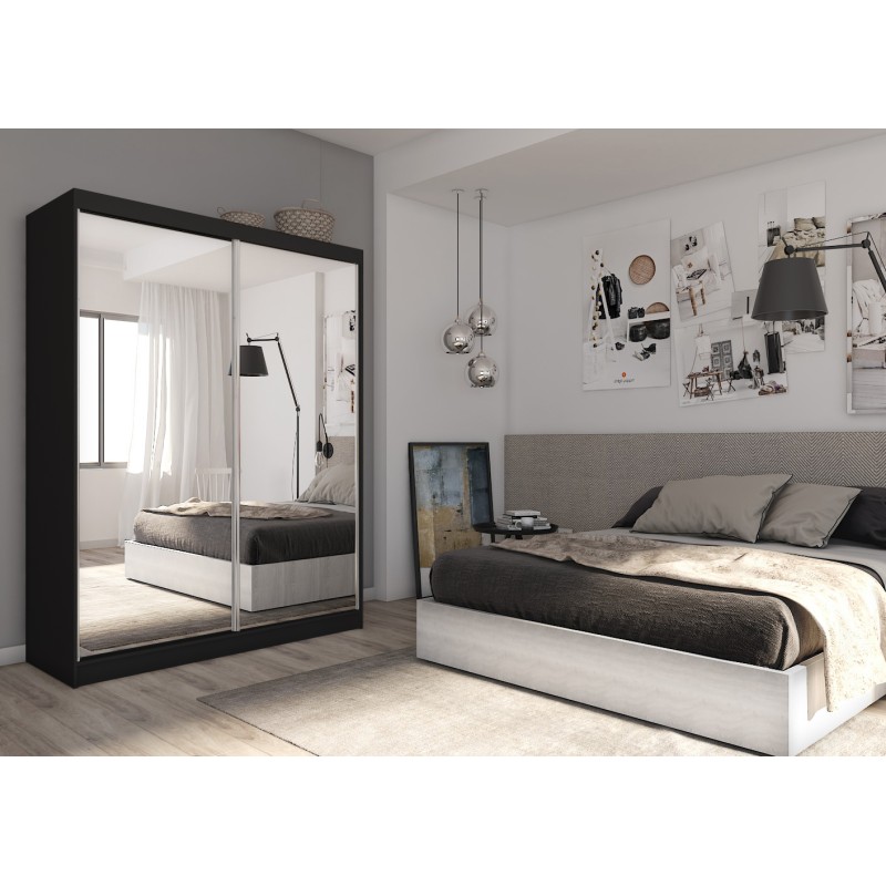 Szafa Przesuwna BELLINA 160 cm z Lustrem Szafa Dwudrzwiowa Czarna