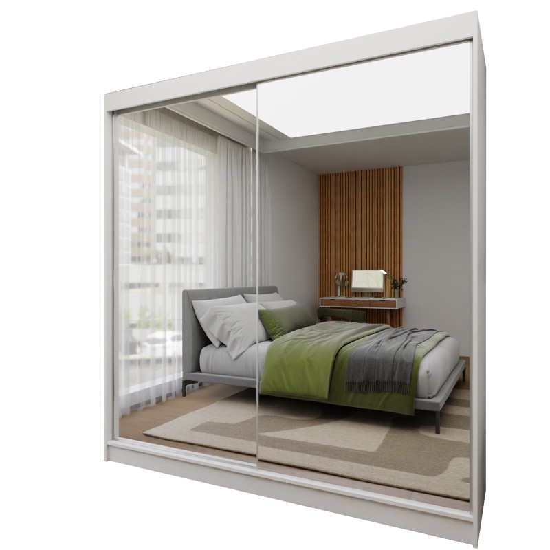 Szafa Przesuwna BELLINA 200 cm z Lustrem Szafa Dwudrzwiowa Biała