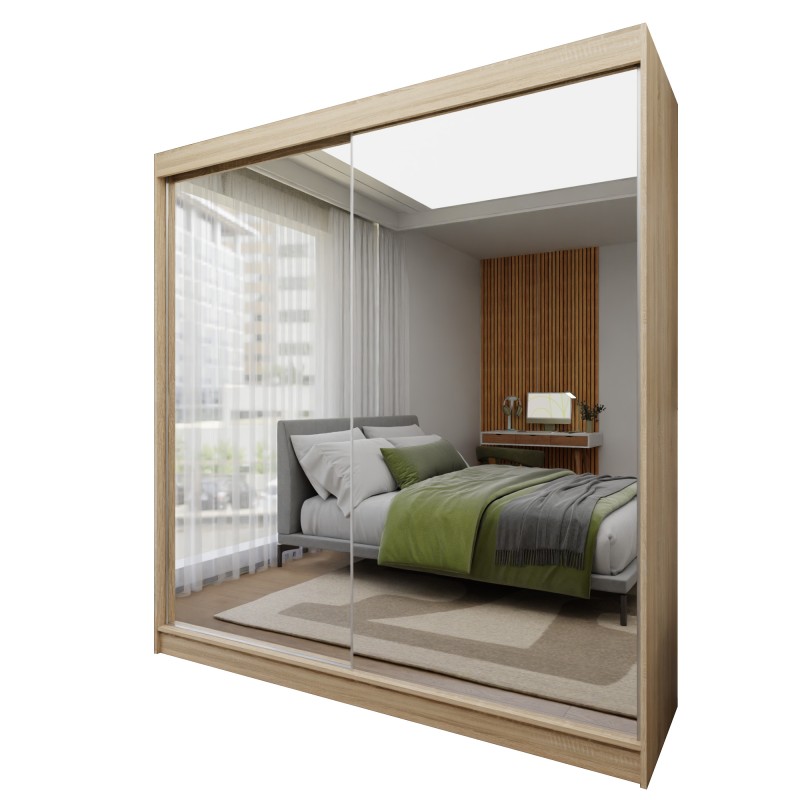 Szafa Przesuwna BELLINA 200 cm z Lustrem Szafa Dwudrzwiowa Dąb sonoma