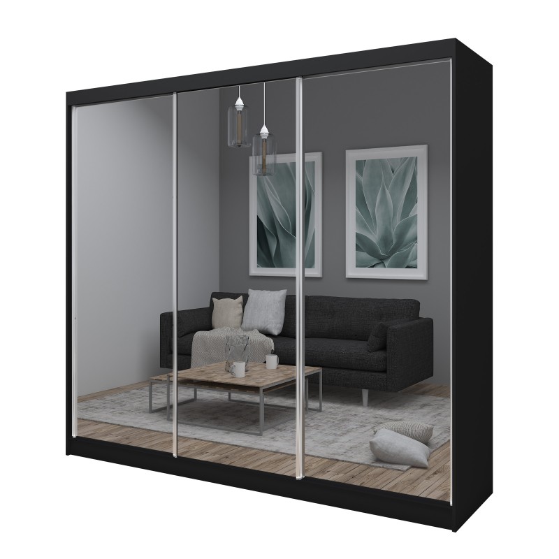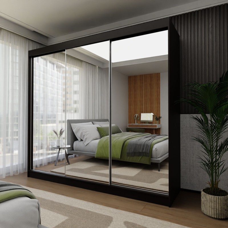 Szafa Przesuwna BELLINA 240 cm z Lustrem Szafa Trzydrzwiowa Czarna