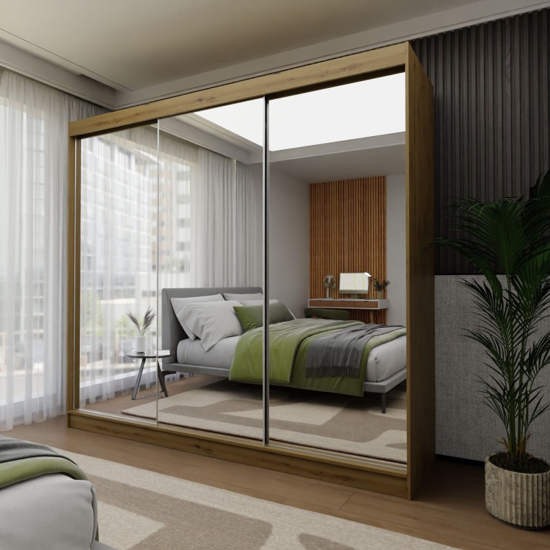 Szafa Przesuwna BELLINA 240 cm z Lustrem Szafa Trzydrzwiowa Dąb artisan