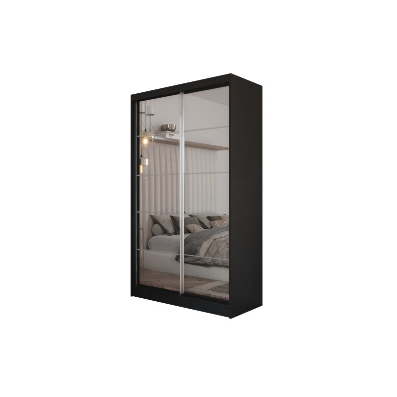 Szafa Przesuwna FIORELLA 120 cm z Lustrem Szafa Dwudrzwiowa Czarna