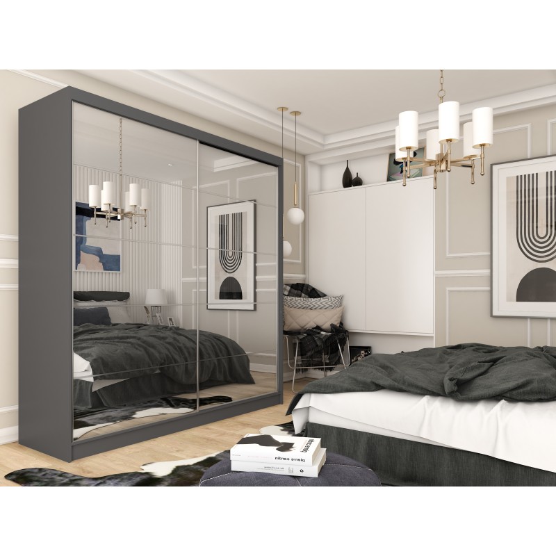 Szafa Przesuwna FIORELLA 200 cm z Lustrem Szafa Dwudrzwiowa Szara