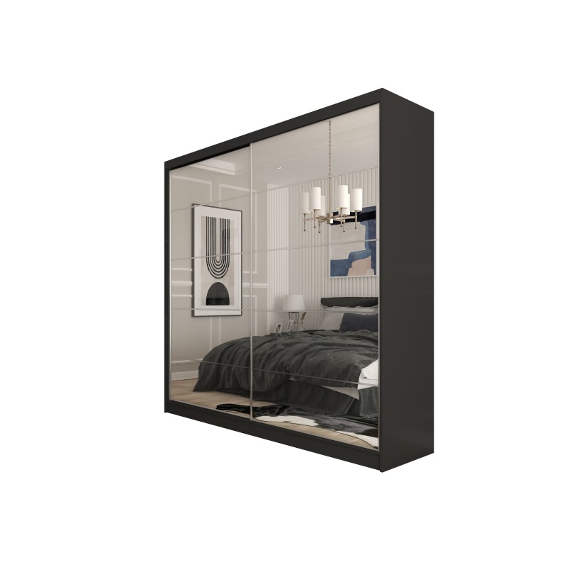 Szafa Przesuwna FIORELLA 200 cm z Lustrem Szafa Dwudrzwiowa Czarna