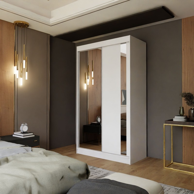 Szafa Przesuwna GRAZIA 120 cm z Lustrem Szafa Dwudrzwiowa Biała