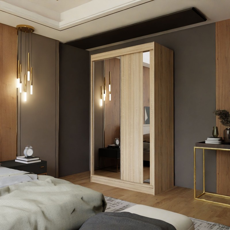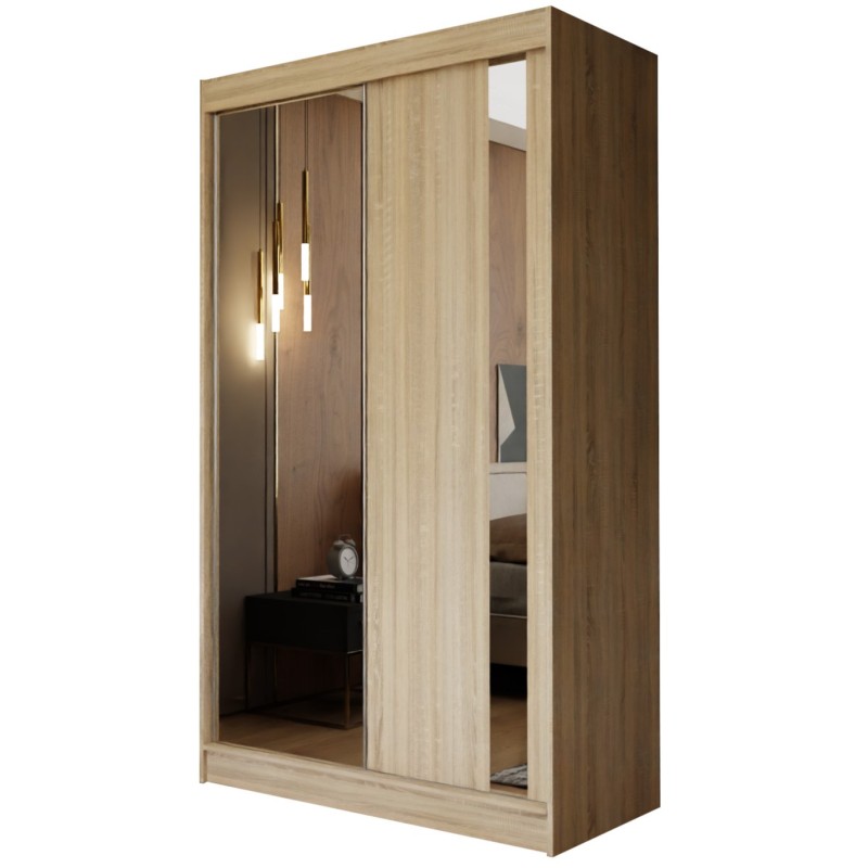 Szafa Przesuwna GRAZIA 120 cm z Lustrem Szafa Dwudrzwiowa Dąb sonoma