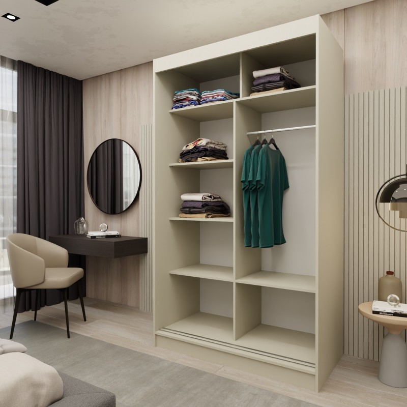 - Dzięki przemyślanemu układowi wnętrza umożliwia łatwą organizację ubrań, obuwia i akcesoriów. Zawsze masz wszystko pod ręką, a Twoje rzeczy są starannie uporządkowane.