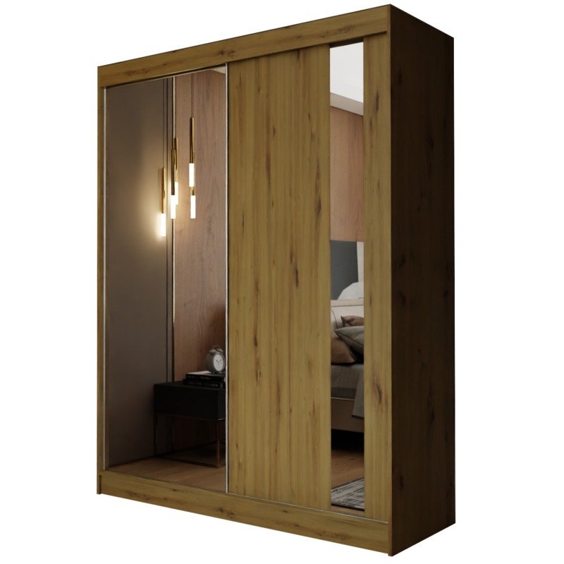 Szafa Przesuwna GRAZIA 150 cm z Lustrem Szafa Dwudrzwiowa Dąb artisan