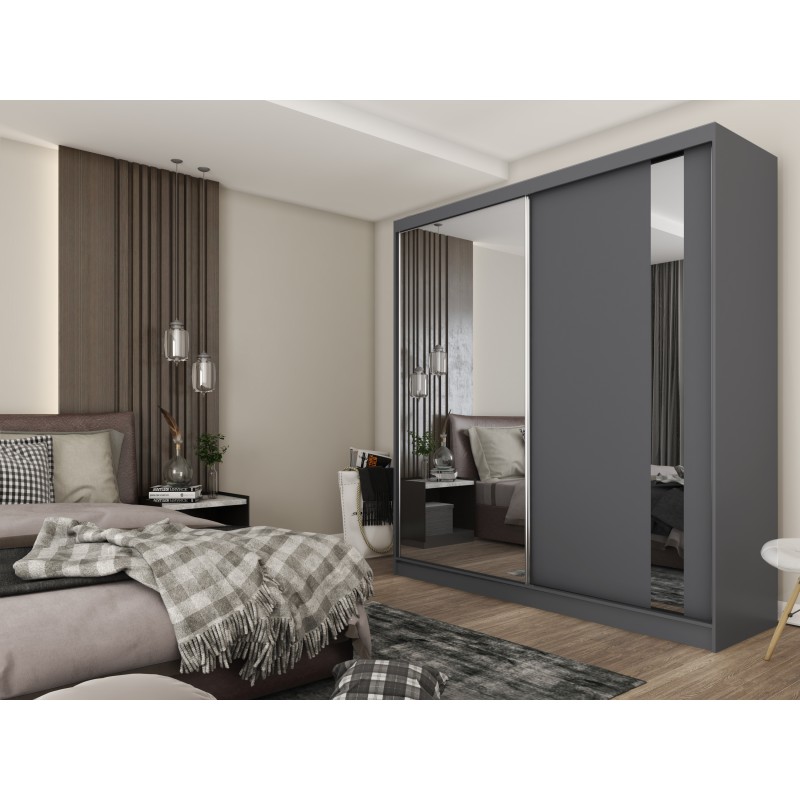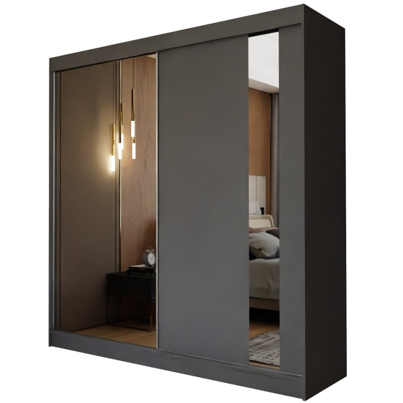 Szafa Przesuwna GRAZIA 200 cm z Lustrem Szafa Dwudrzwiowa Szara
