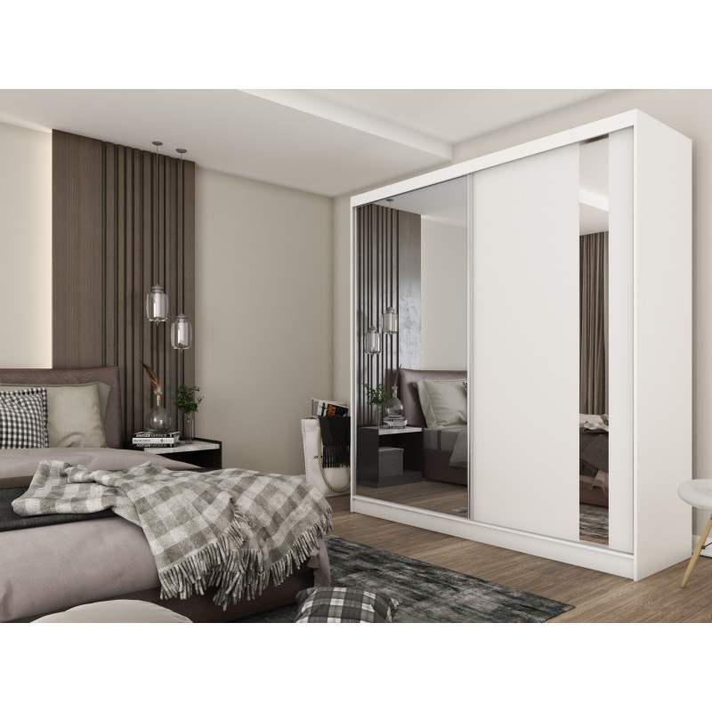 Szafa Przesuwna GRAZIA 200 cm z Lustrem Szafa Dwudrzwiowa Biała