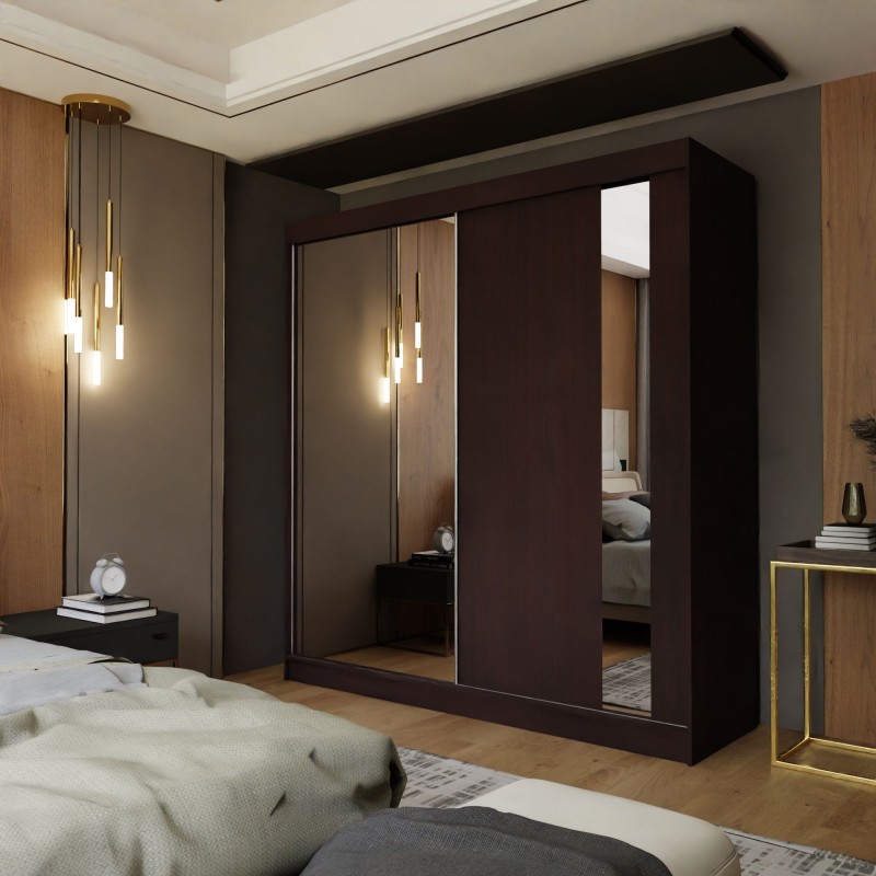 Szafa Przesuwna GRAZIA 200 cm z Lustrem Szafa Dwudrzwiowa Wenge